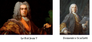 Ce petit pays, riche sur le plan économique grâce à ses nombreux échanges avec le Nouveau Monde, accuse en 1700 un retard d’environ un siècle par rapport aux grands courants européens de la musique, notamment à l’époque de l’explosion baroque qui s’étend de Rome à la Flandre. Mais c’est sans compter sur le roi Jean V (1689–1750), dont le règne de 33 ans (1707–1750) est marqué par une mégalomanie qui le pousse à construire de nombreux édifices, dont le palais de Mafra. Il y invite Domenico Scarlatti, célèbre pour ses sonates pour clavecin. À la cour, Scarlatti initie les infants du Portugal, notamment Maria Barbara, future reine d’Espagne et grande interprète de ses sonates. Il devient aussi le maître du premier compositeur évoqué par notre conférencier, Almeida, qu’il envoie se former à Rome dans les domaines de la musique instrumentale, de l’opéra (profane) et de l’oratorio (sacré). C’est ainsi que naît La Giuditta de Francisco de Almeida, ainsi que le Te Deum de 1733, premier opéra écrit par un portugais.